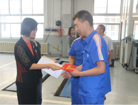 (集團(tuán)群團(tuán)工作部 訊 張俊福/文攝)8月30日-31日,集團(tuán)黨委委員、副總經(jīng)理劉玲同志一行4人,分別赴物產(chǎn)汽貿(mào)公司、物產(chǎn)工投公司,代表集團(tuán)黨委宣讀了《關(guān)于對參加全省青年職工職業(yè)技能大賽獲獎選手獎勵的通知》(青物黨〔2018〕127號),并為獲獎選手石學(xué)林、張懷軍、陳志財頒發(fā)了獎金。