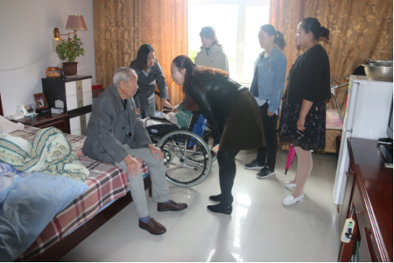 互動游戲結(jié)束后,志愿者們參觀老人們的居所,并陪伴在老人們身邊說著貼心的話。一對結(jié)婚60多年的老人,始終形影不離、相互扶持,相濡以沫。老奶奶激動的對志愿者說:"你們能來看望我們,噓寒問暖,使我們感到非常親切。"老年公寓負責人說:"你們的到來使老年公寓熱鬧起來,為老人們送來了歡樂和溫馨"。