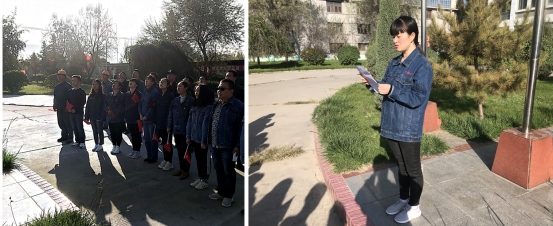 上午9時(shí)整,升起儀式正式開始,激昂的《義勇軍進(jìn)行曲》莊嚴(yán)響起,擎旗手揮臂揚(yáng)起,五星紅旗冉冉升起。全體團(tuán)員青年面向國旗列隊(duì)并行注目禮,共同祝愿?jìng)ゴ笞鎳睒s富強(qiáng),祝福物產(chǎn)明天更加燦爛美好。