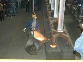 2012年7月7日上午11點零19分,青海物產(chǎn)工業(yè)投資有限公司10萬噸電解鋁/年升級改造項目,簡易陽極組裝車間大門前鞭炮齊鳴。青海物產(chǎn)工業(yè)投資有限公司黨總支副書記、青海長春炭素有限公司總經(jīng)理王松華,公司常務(wù)副總經(jīng)理、項目副總指揮常海寧,工業(yè)投資和長春炭素公司副總經(jīng)理姜紅萍,公司副總經(jīng)理張秉瑜,總經(jīng)理助理范登福等公司領(lǐng)導(dǎo)和各車間、部室的職工出席了簡單的點火澆鑄儀式。王松華同志按下了點火按鈕鄭重宣布澆鑄正式開始。當(dāng)中頻爐工將第一爐鐵水倒入抬包時,標志著新陽極組裝車間正式投產(chǎn)運行。